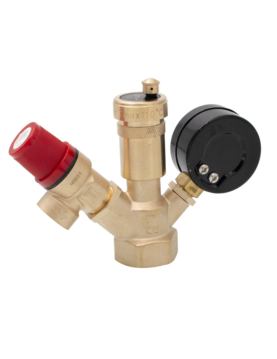 Manometrul are rolul de a afisa presiunea agentului termic din instalatie. Aerisitorul automat cu plutitor permite evacuarea fara interventie manuala a aerului si gazelor ce se formeaza in instalatie prevenind fenomenele de coroziune, cavitatie sau a dopurilor de aer in instalatie. Concomitent supapa de siguranta mentine sub limita maxima admisa de 3 bar, presiunea agentului termic. In cazul in care presiunea din instalatie depaseste 3 bar, supapa se deschide regland astfel presiunea si protejand instalatia.