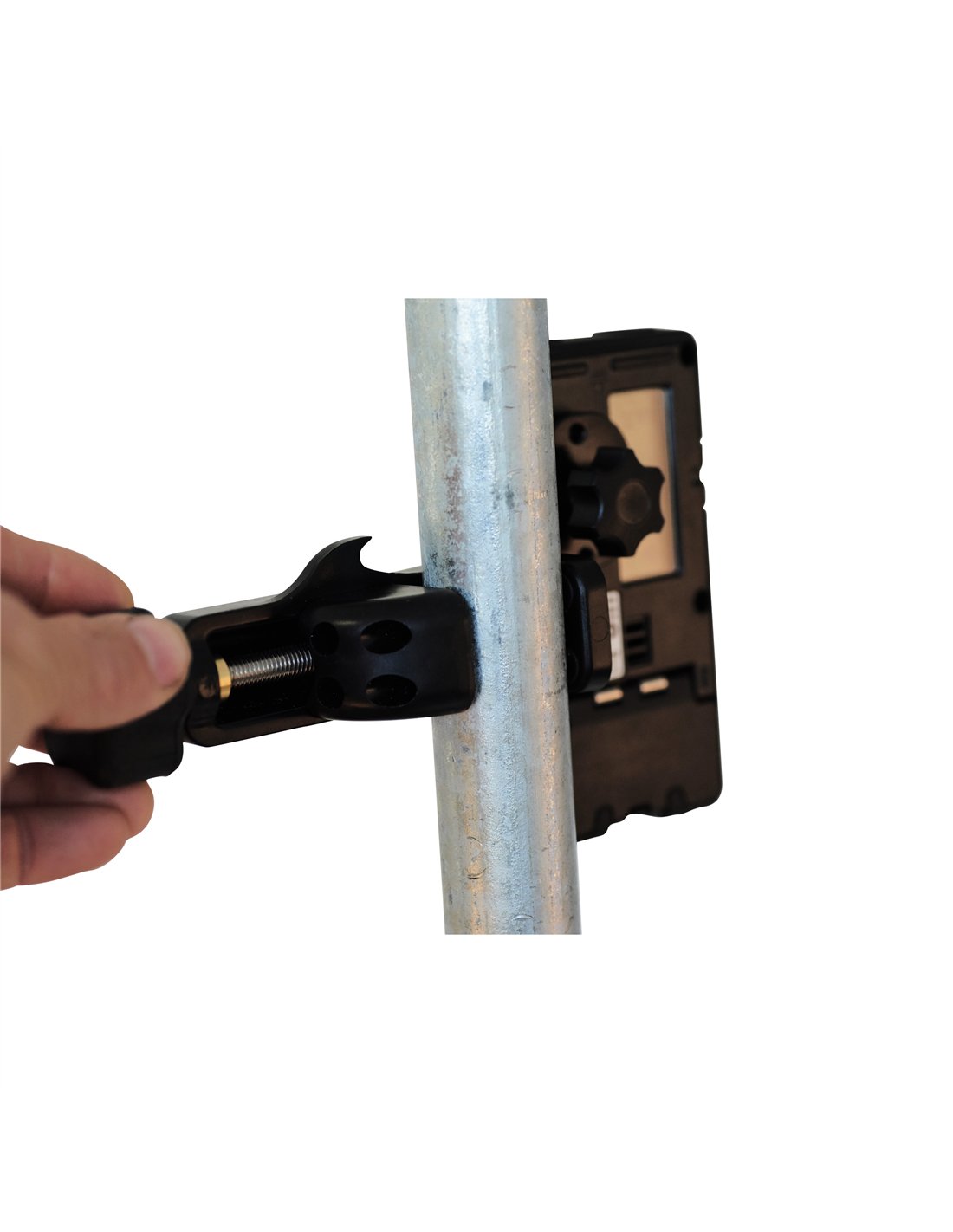 - Este livrat împreună cu bateria 1x AA și o piesă de prindere de material pentru a se fixa pe o tijă, un știft, o țeavă sau niveluri pentru setarea cotei