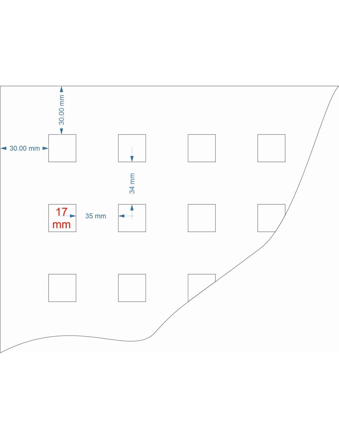 Perimetrul foii de tabla: 30 mm (marginea de fixare)